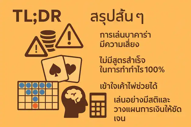 คำเตือน: ในการเล่นบาคาร่าหรือการใช้งานเครื่องมือเหล่านี้ ควรทำด้วยความรับผิดชอบและตระหนักถึงกฎหมายการพนันในประเทศไทย การเสี่ยงโชคมีความเสี่ยง ควรใช้งบประมาณอย่างมีวิจารณญาณเสมอ และเล่นเพื่อความบันเทิงเป็นหลัก