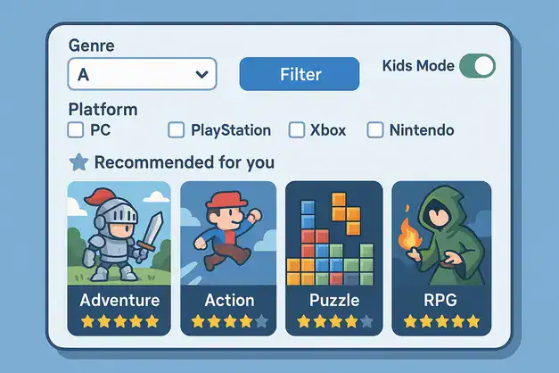 สำหรับผู้ใช้ที่ต้องการคำแนะนำพิเศษ เรามีฟังก์ชัน ‘แนะนำสำหรับคุณ’ ที่จะสรรหาเกมจากพฤติกรรมการเล่นเดิมของคุณ และสำหรับผู้ปกครองที่ห่วงเรื่องความปลอดภัย เรามี ‘โหมดเด็ก’ ที่จะช่วยกรองเนื้อหาที่ไม่เหมาะสม ทำให้มั่นใจได้ว่าประสบการณ์ของลูกน้อยปลอดภัยมีสุขลักษณะและบันเทิงไปพร้อม ๆ กัน การเลือกเกมจึงทั้งง่ายและยืดหยุ่นมากขึ้นด้วยฟีเจอร์เหล่านี้ เสริม SEO ด้วยการใช้ schema.org เช่น SoftwareApplication และ AggregateRating จะช่วยให้บทความของคุณค้นหาง่ายขึ้น พร้อมกับการติดตามผลด้วย A/B testing เพื่อปรับปรุงคำแนะนำและใช้งานที่มีประสิทธิภาพยิ่งขึ้น
